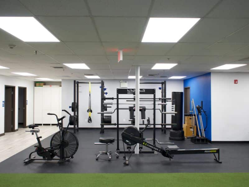 Our Marlton clinic is a beautifully renovated, spacious facility designed to inspire movement. With high-quality strength and conditioning equipment, we integrate performance-based rehab directly into your treatment plan — helping you progress from recovery to peak performance in one seamless environment.